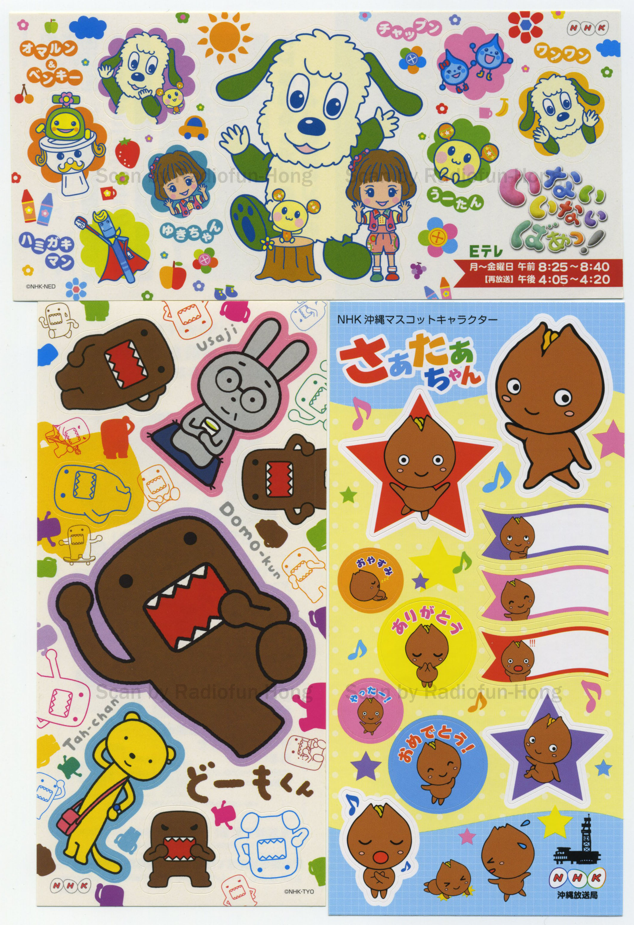 三张吉祥物贴纸:分别是 NHK-E いないいないばあっ、多摩君、冲绳局さぁたぁ