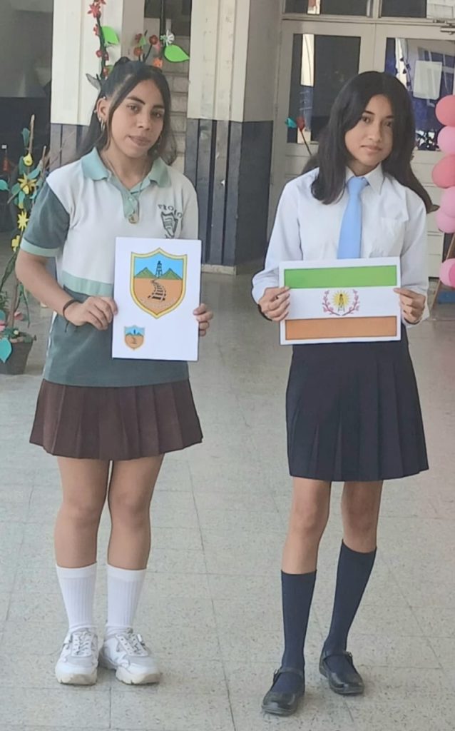 莫斯科尼将军镇徽设计者亚历杭德拉·洛佩斯(左,Alejandra López)、镇旗梅拉尼·索萨(右,Melani Sosa)
