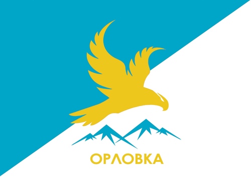 在市旗正中心,有一只雄壮的金鹰翱翔在蓝色的山脉上空。金鹰代表力量、自由和骄傲,体现了奥尔洛夫卡的独立精神和历史意义。蓝色山脉凸显了奥尔洛夫卡的财富、繁荣和当地蕴藏的重要自然资源,这些资源作为当地社会发展与人民生活的经济支柱。下方写有吉尔吉斯文市名「ОРЛОВКА」。