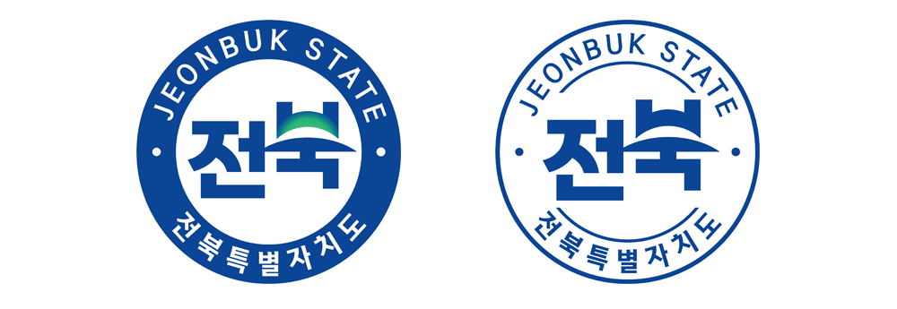 全罗北道自 1969 年以来使用过多种不同设计的道旗道徽,从传统的纹章设计、到简笔设计、到 LOGO 化的 J 字设计、再到现在的韩文设计,可谓是韩国当代标志设计的进化演变吧。而韩国 LOGO 设计的韩文化除了其简单粗暴,更进一步以文字显现韩国的文化特色。