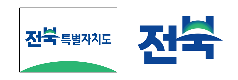 此外,全北特别自治道还推出了新版道旗、道徽,其设计抛弃过往的图案思维,而是直接以韩文作为道旗、道徽的主要元素,这与去年同样是改制成立的江原特别自治道如出一辙。道徽为「전북」两个文字,即「全北」的韩文。而「북」又被特意设计成太阳升起的地平线形状,意即全北历史的「土地」与新万金的「地平线」相结合,表达了全北特别自治道作为未来开辟新视野的全球生活经济区域,以及未来充满希望的全北形象。