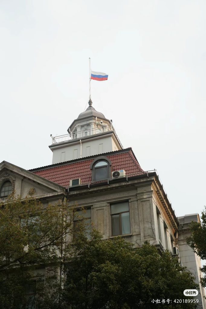 3 月 24 日,俄罗斯驻上海总领事馆为恐怖袭击遇难者降半旗致哀(图源 小红书)