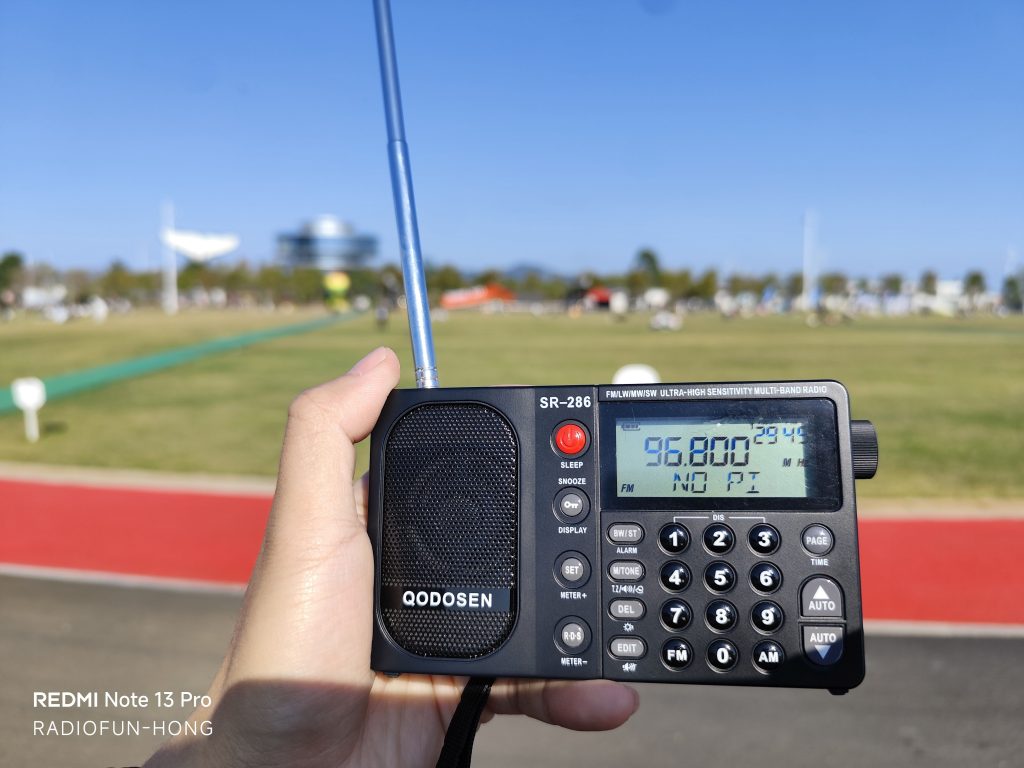2026 年 1 月 2 日下午,正值元旦假期,笔者到潮州凤凰洲南端的潮人公园游览。虽然天气晴空无云但非常寒冷,在潮人公园的阳光大草坪晒晒太阳既能取暖也能补钙(阳光大草坪的名头就是这么来的)。笔者随手带上 SR-286 收音机,在这里共搜到 40 多个 FM 广播频率,当中包含了潮州、汕头、揭阳、梅州、汕尾、漳州等地粤东到闽南一带的广播频率,均可无障碍接收。